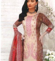 ওড়না (দোপাট্টা) এর কাজ: পরিপূরক প্যাটার্ন এবং একটি সমৃদ্ধ লাল বর্ডার সহ একটি প্রিন্টেড শিফন দোপাট্টা সমন্বিত, যা রঙের একটি পপ এবং একটি মার্জিত প্রবাহ যোগ করে।